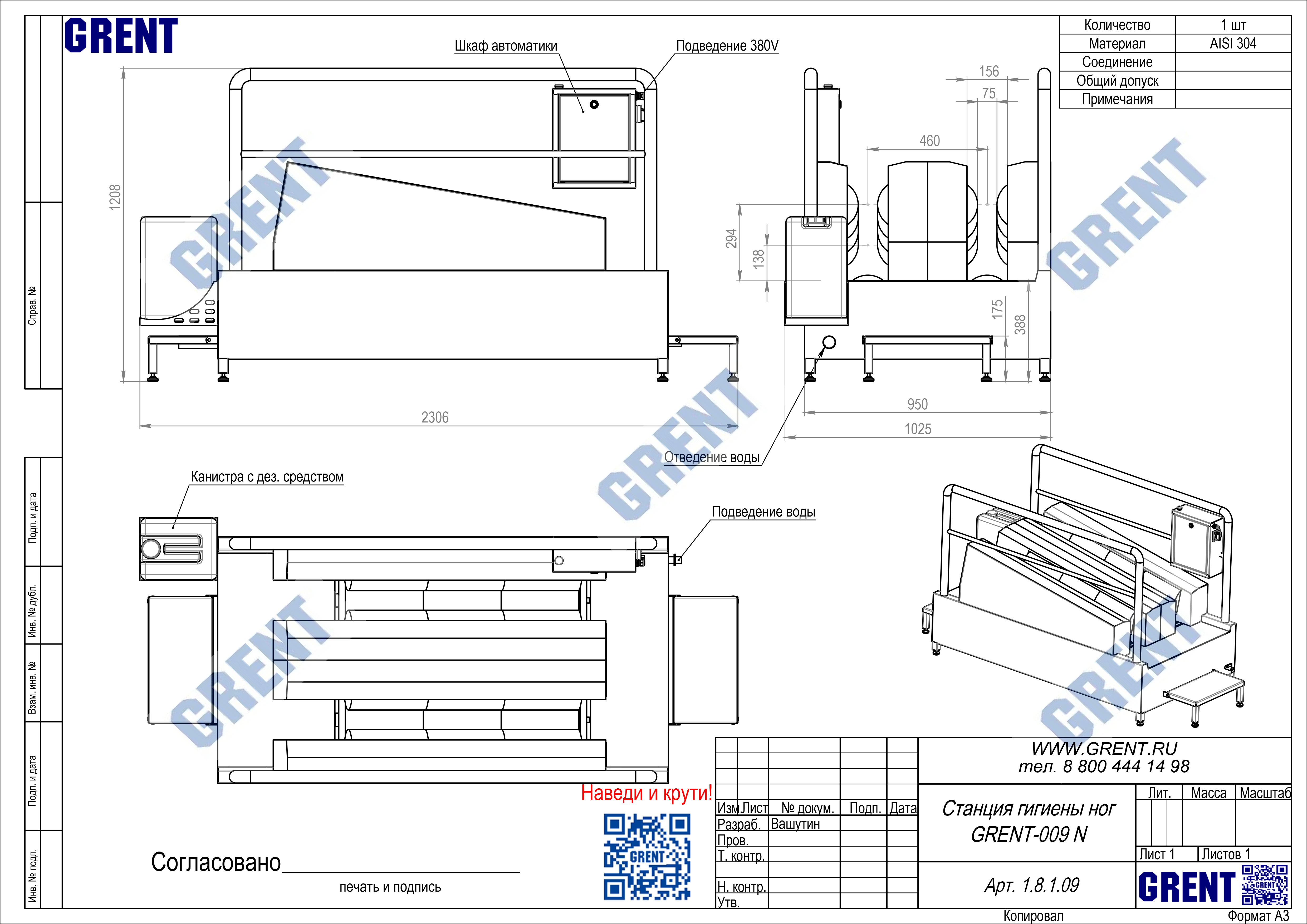 - Материал изготовления — нержавеющая сталь стандарта 1.4301 (AISI 304).