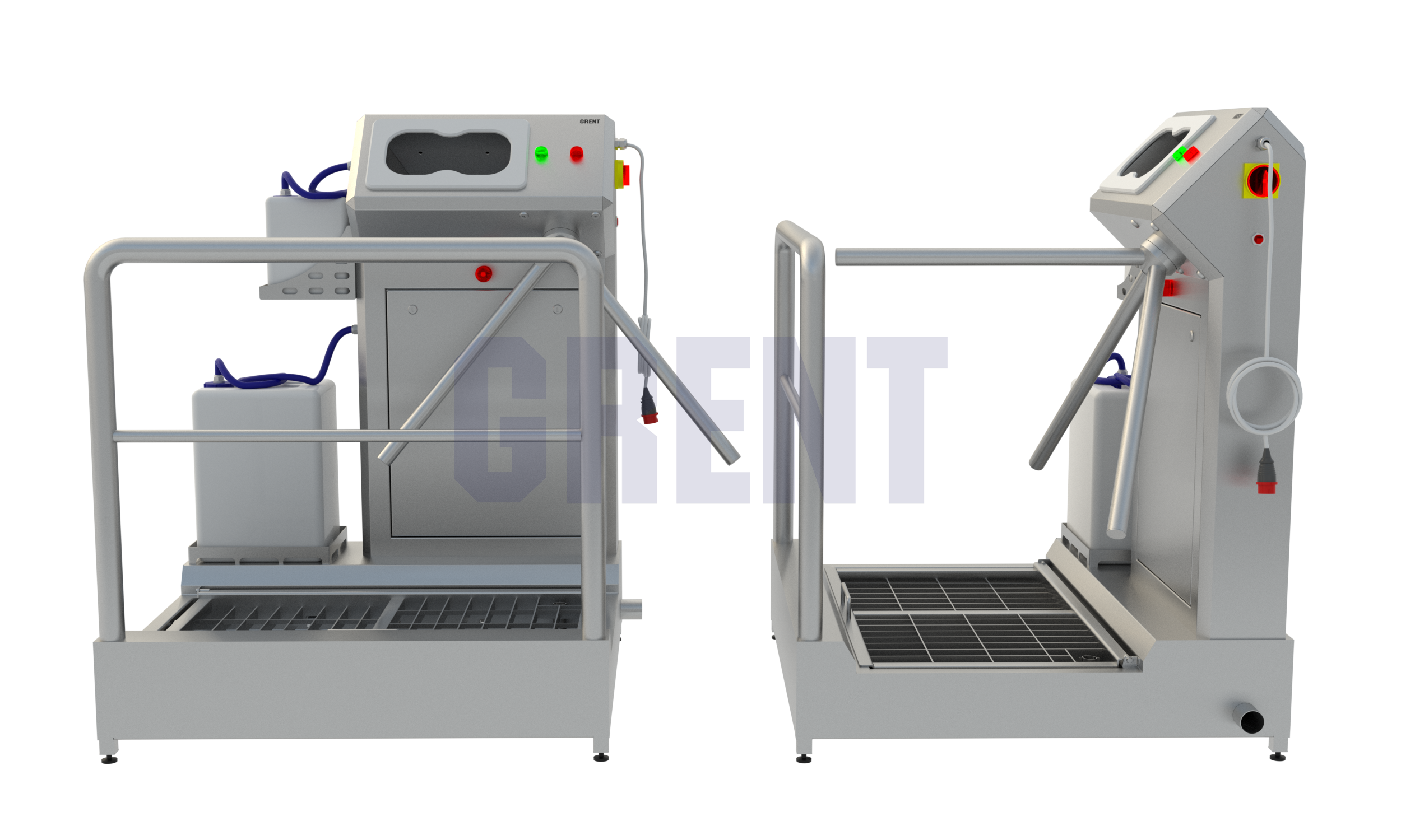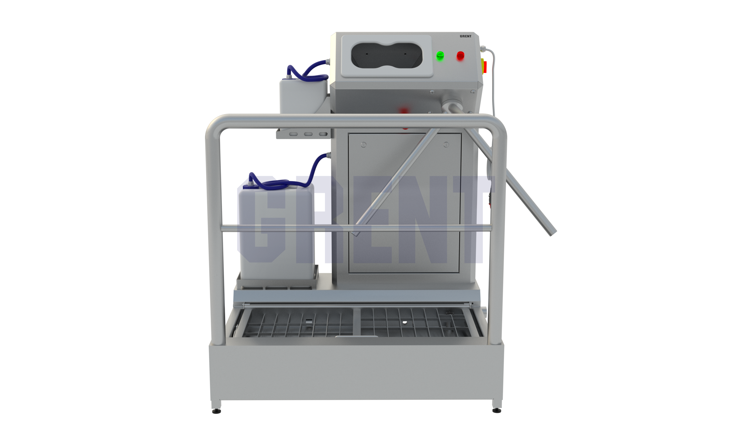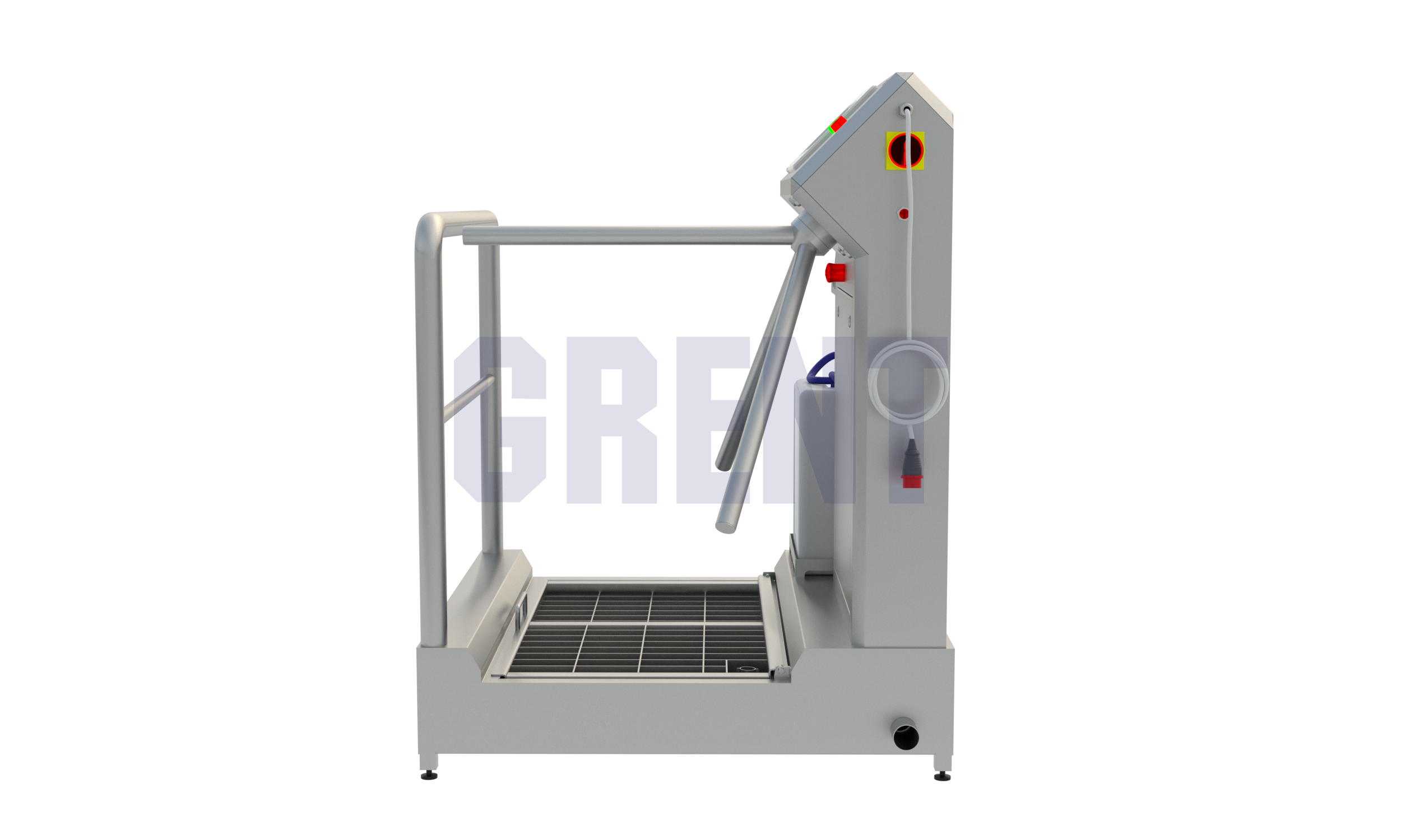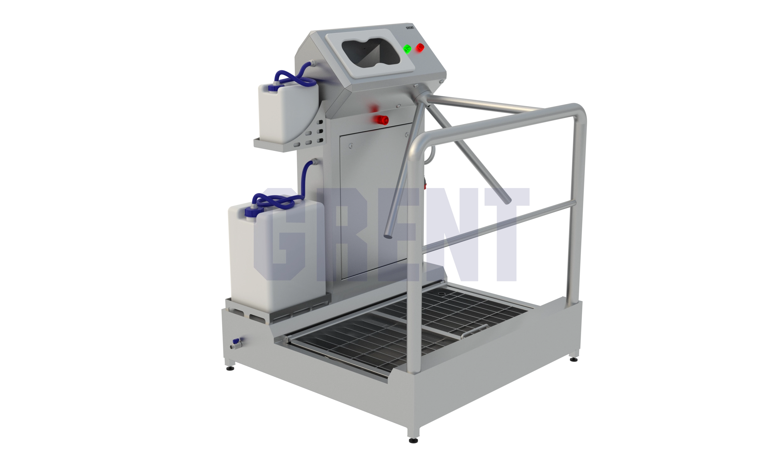 Односторонняя станция гигиены GRENT 021 P предназначена дезинфекции кистей рук и подошвы обуви при входе в чистые помещения на производстве.